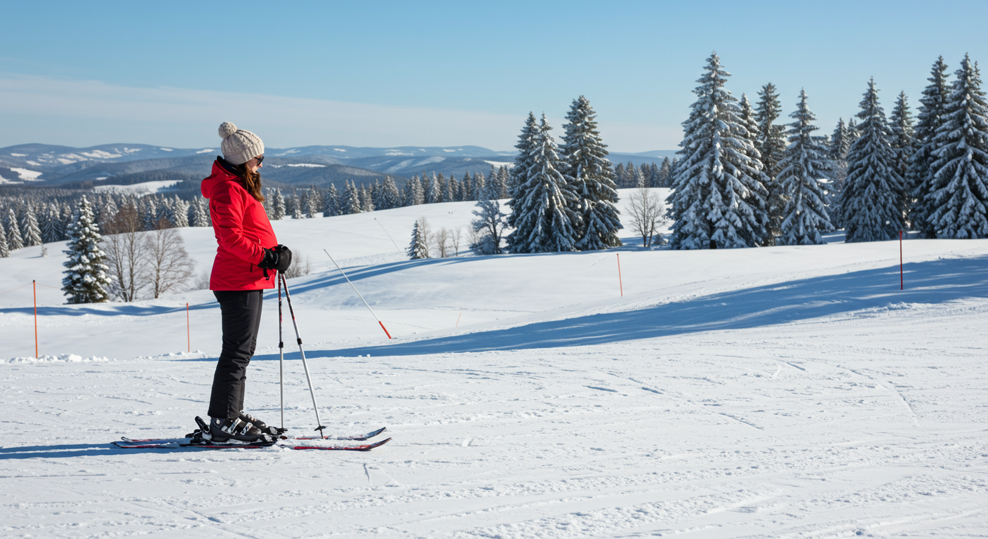 Wybieraj bezpieczne miejsce i czas: jeździj wyłącznie po łagodnych, szerokich i dobrze przygotowanych trasach (np. niebieskich). Unikaj tłumów, wybierając pory, gdy na stoku jest luźniej, na przykład poranki w środku tygodnia.